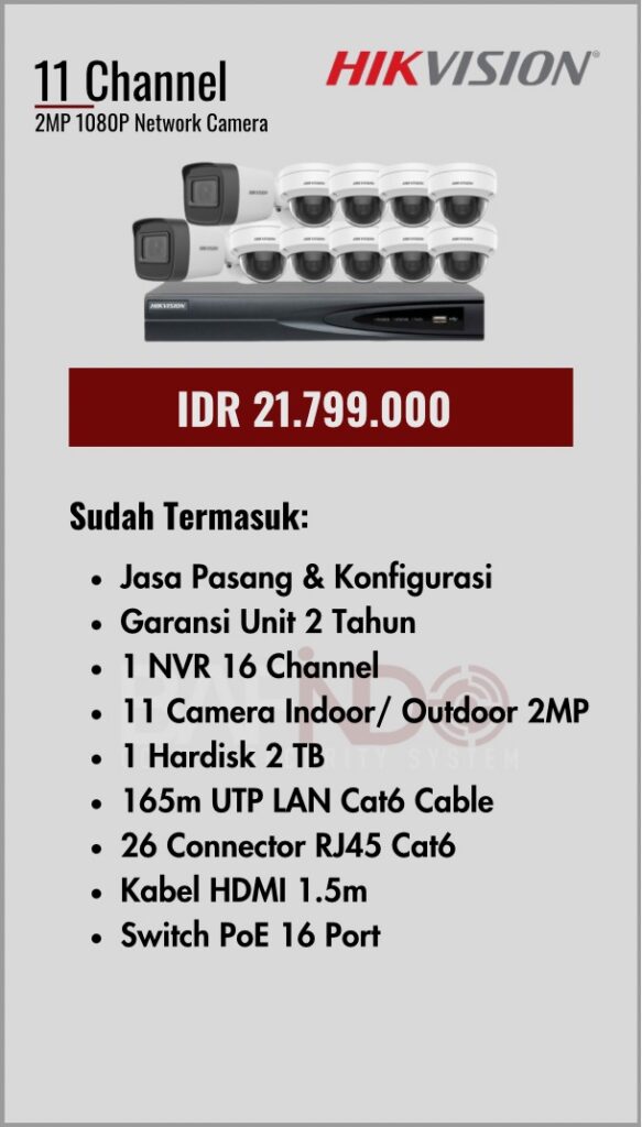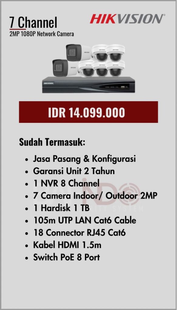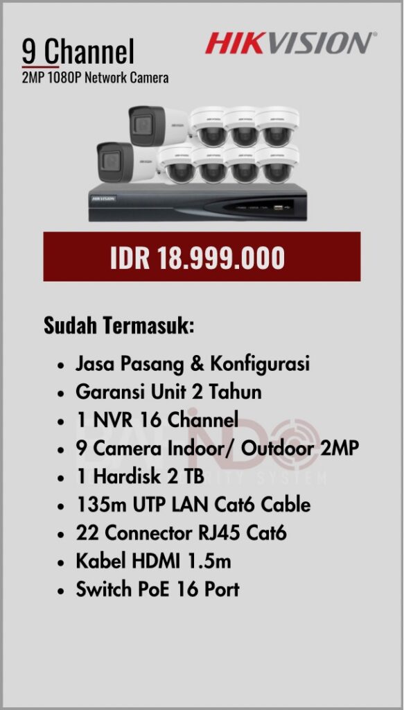 Paket yang sudah lengkap dengan kabel, garansi unit, DVR maupun NVR sampai jasa pasang mempermudah anda dalam pemasangan CCTV.