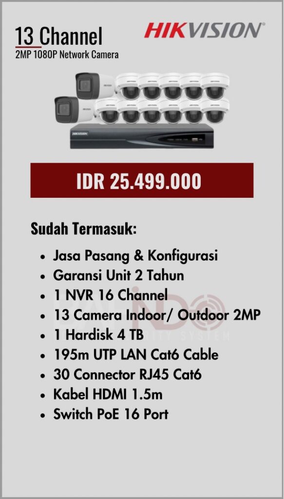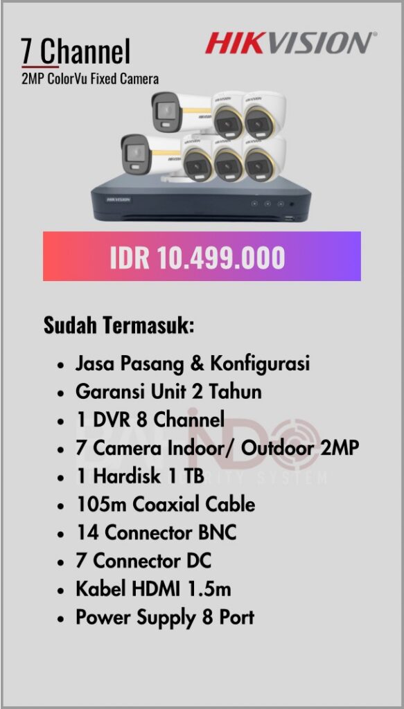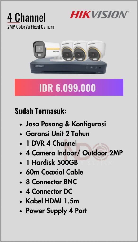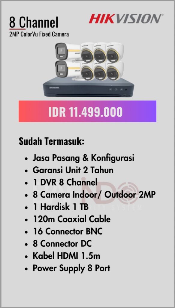 BAFINDO CCTV menyediakan berbagai pilihan paket kamera CCTV HIKVISION — kamera analog, kamera dengan audio, full color kamera, dan IP Cam sesuai kebutuhan anda.