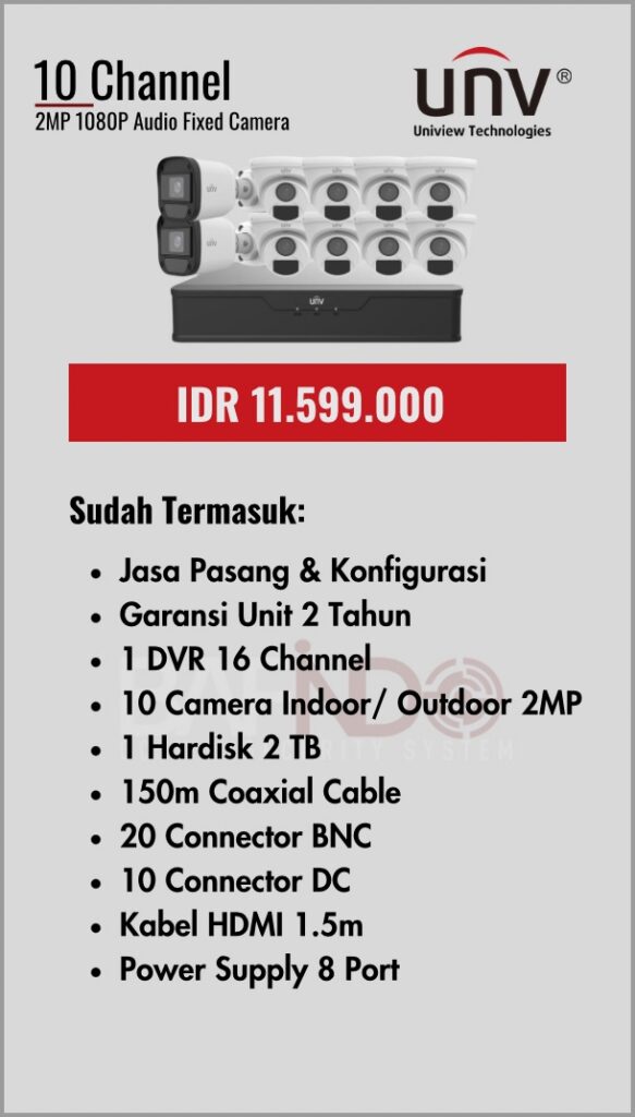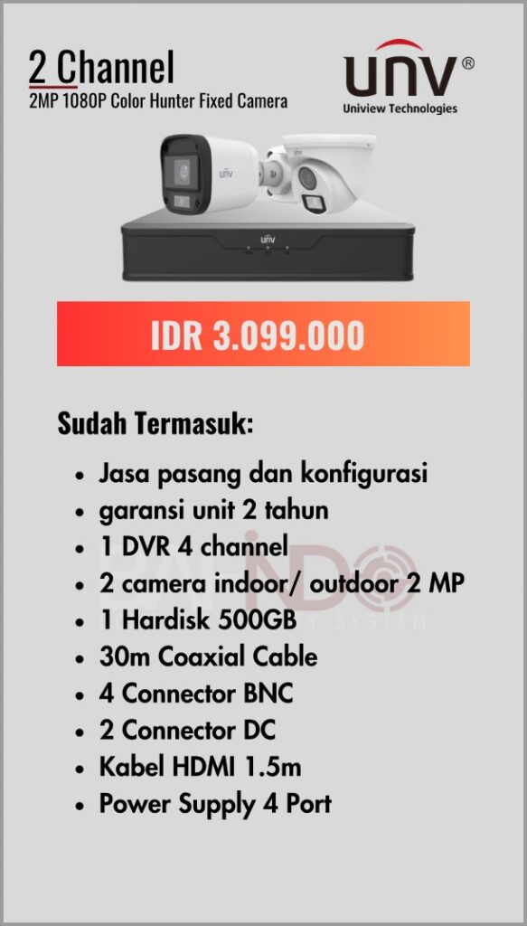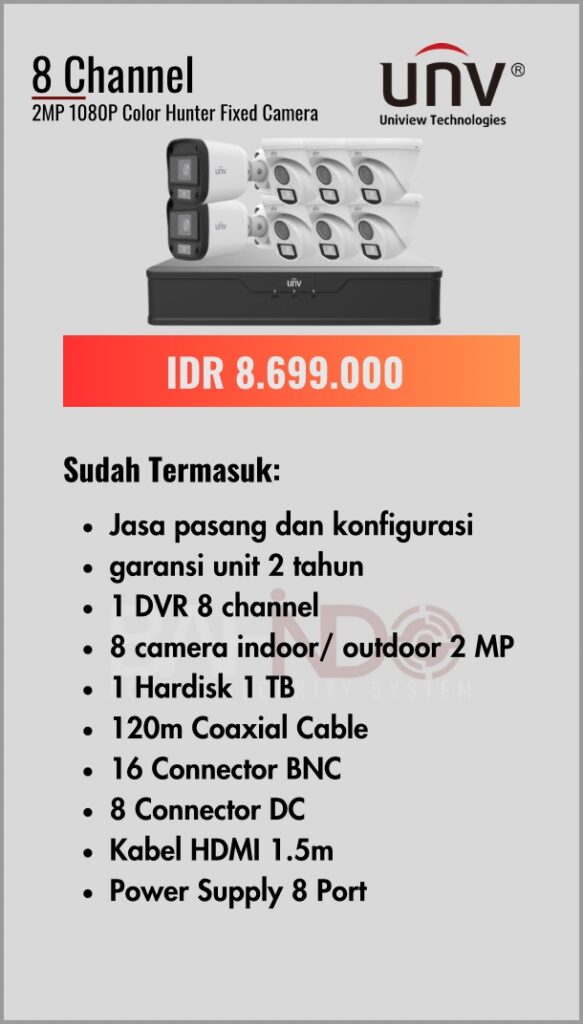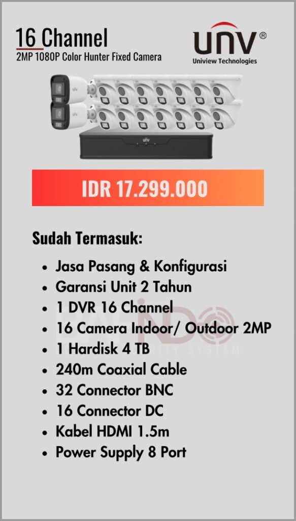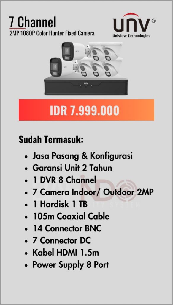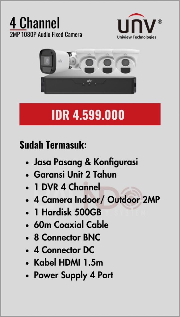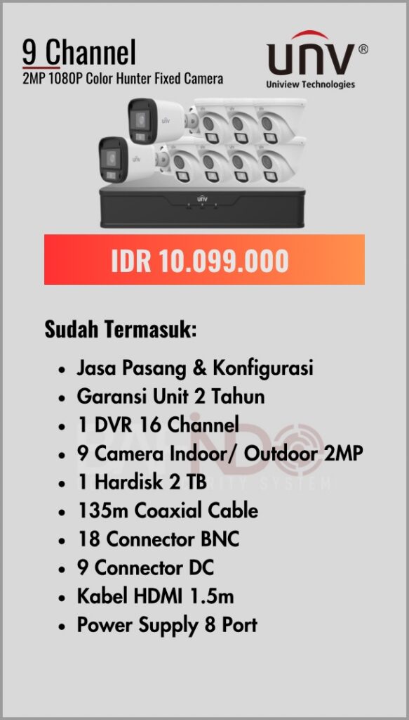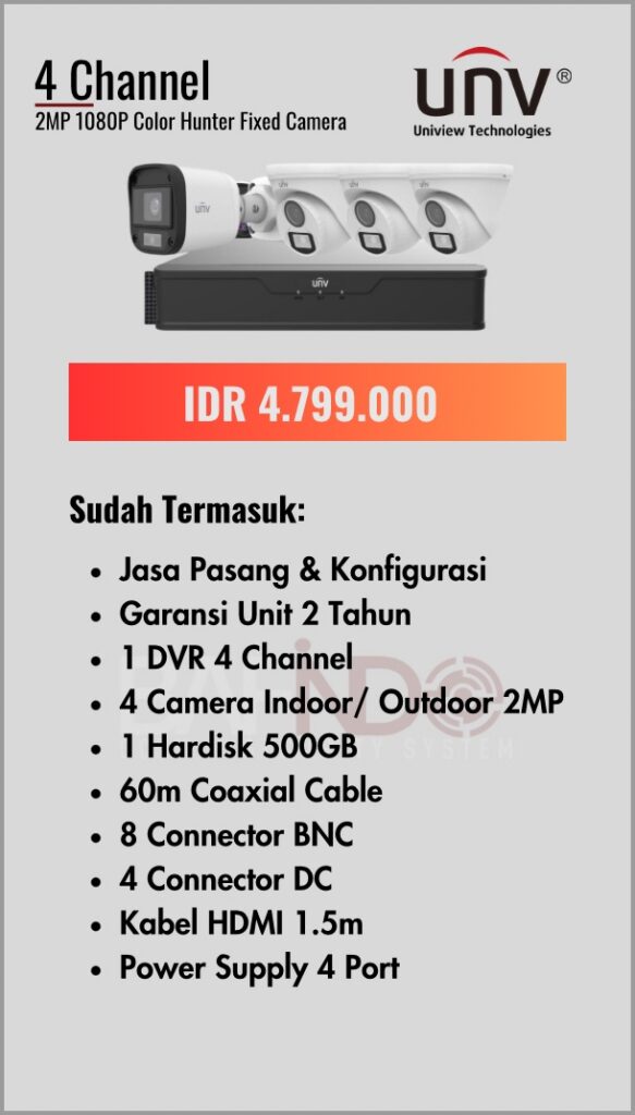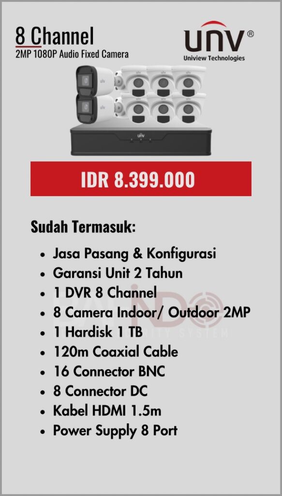 BAFINDO CCTV menyediakan berbagai pilihan paket kamera CCTV UNV — kamera analog, kamera dengan audio, full color kamera, dan IP Cam sesuai kebutuhan anda.