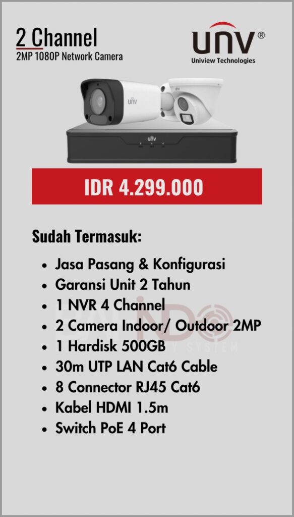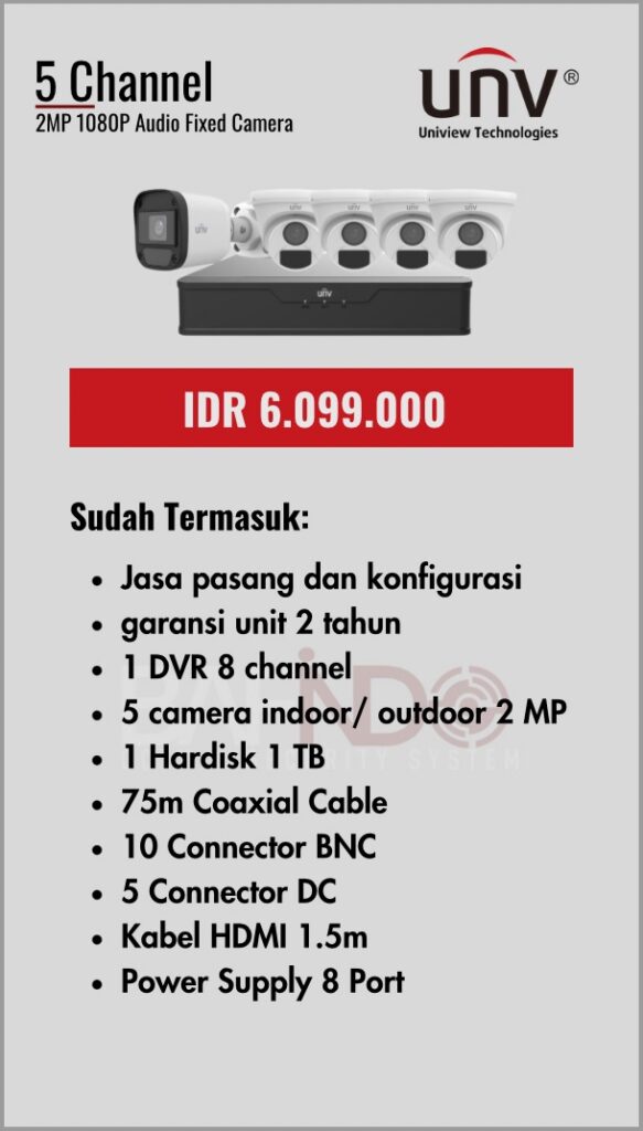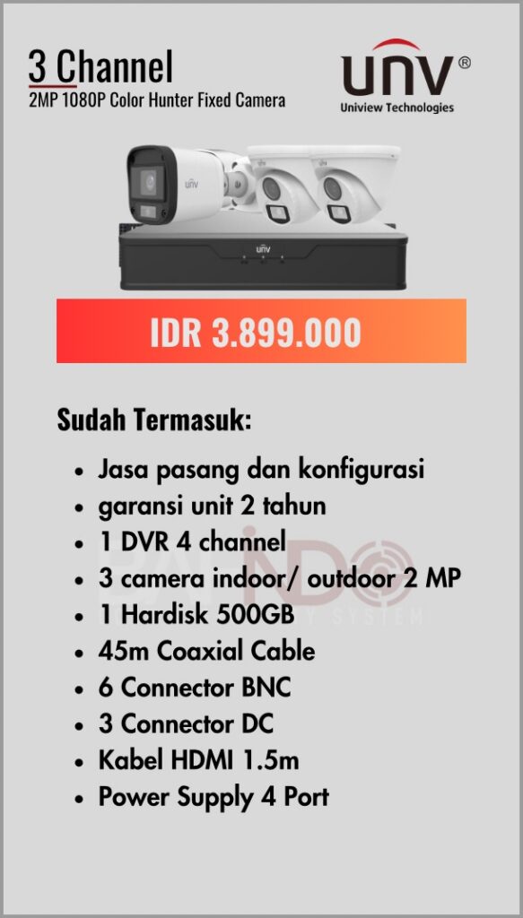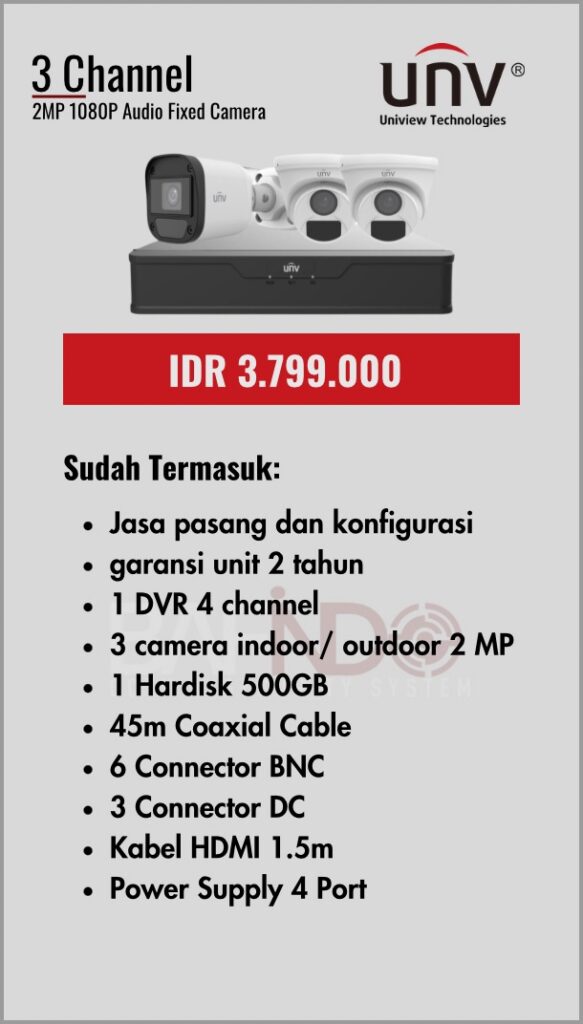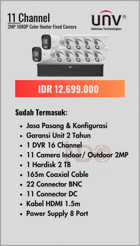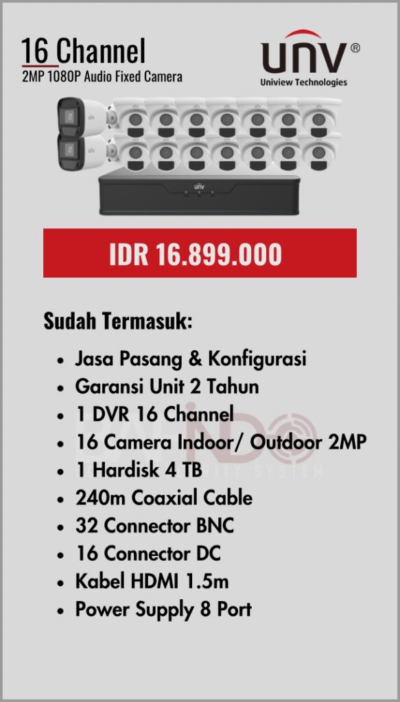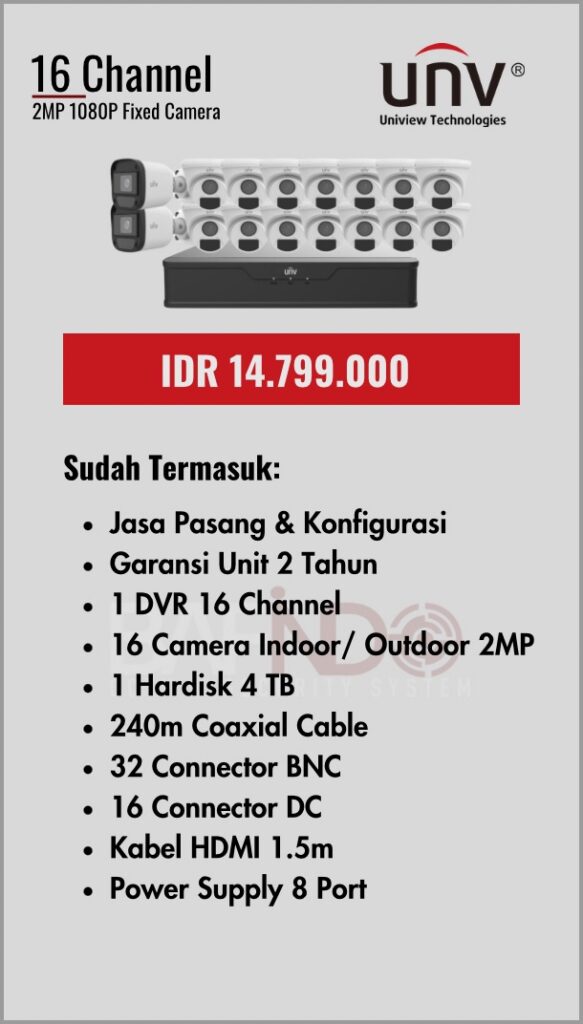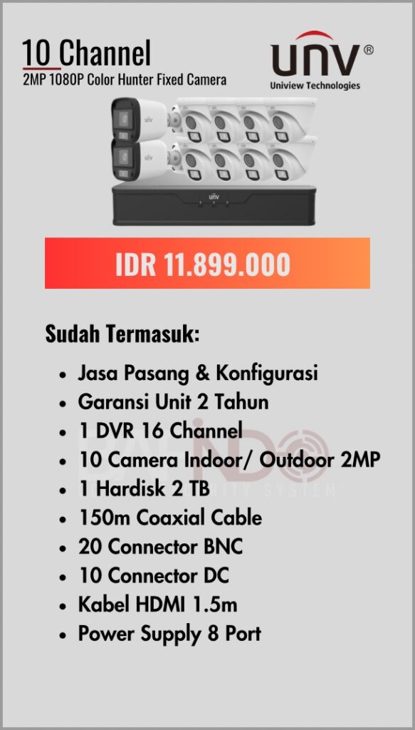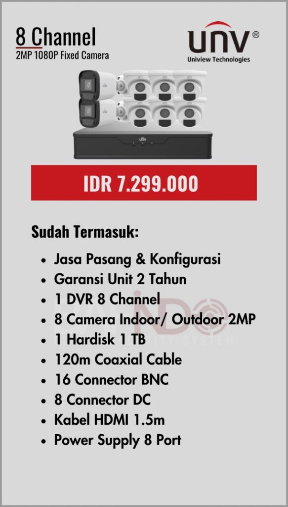 BAFINDO CCTV menyediakan berbagai pilihan paket kamera CCTV UNV — kamera analog, kamera dengan audio, full color kamera, dan IP Cam sesuai kebutuhan anda.