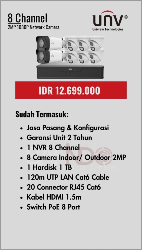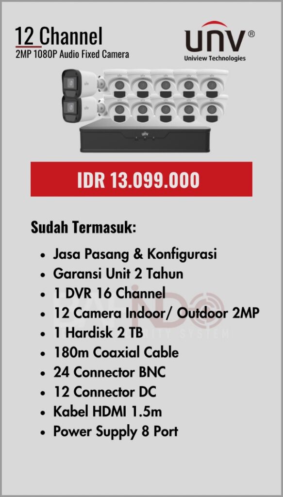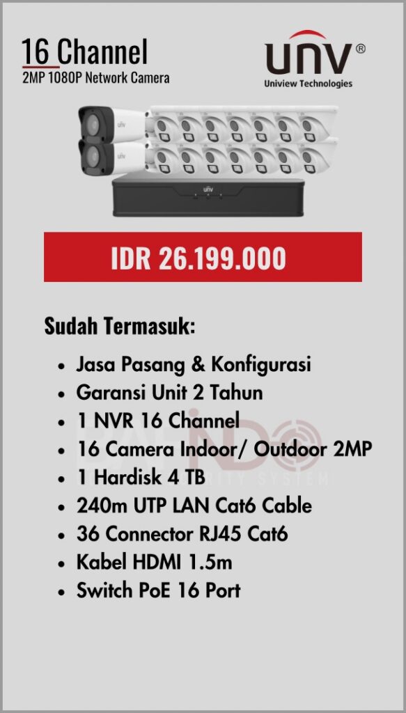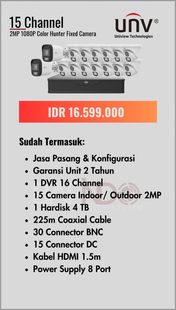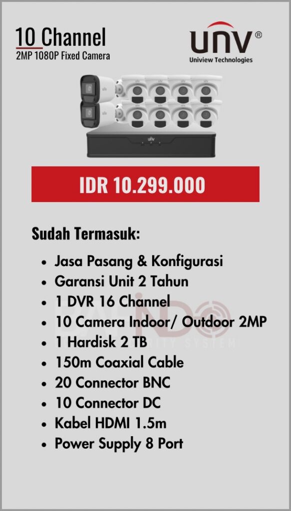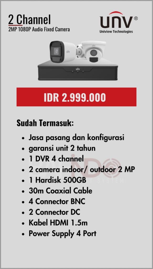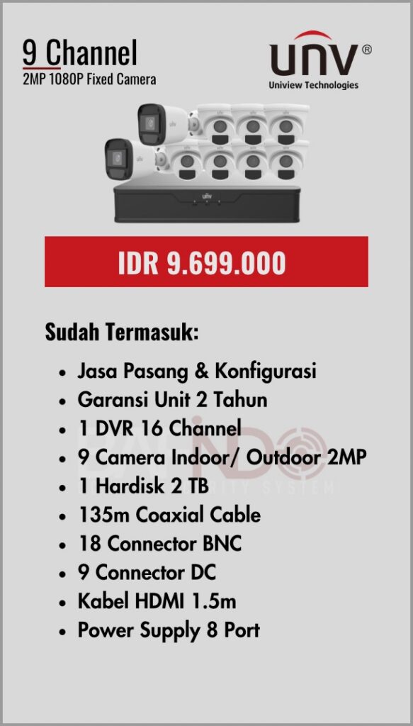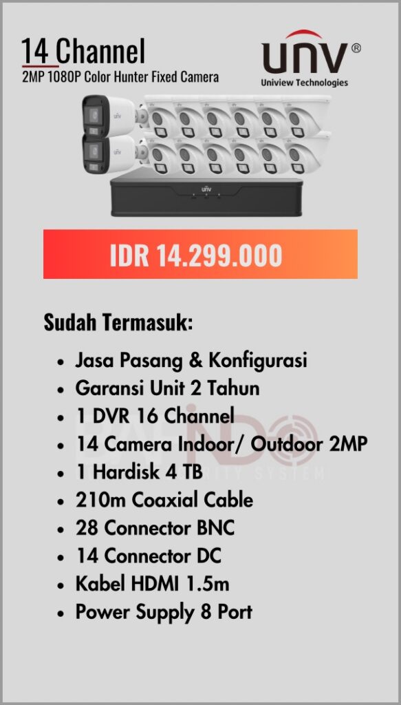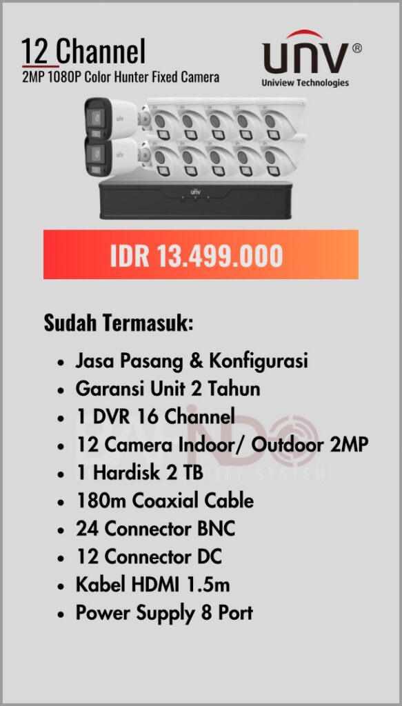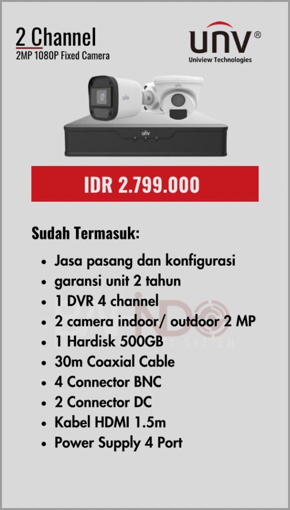 BAFINDO CCTV menyediakan berbagai pilihan paket kamera CCTV UNV — kamera analog, kamera dengan audio, full color kamera, dan IP Cam sesuai kebutuhan anda.