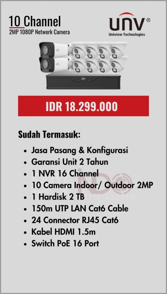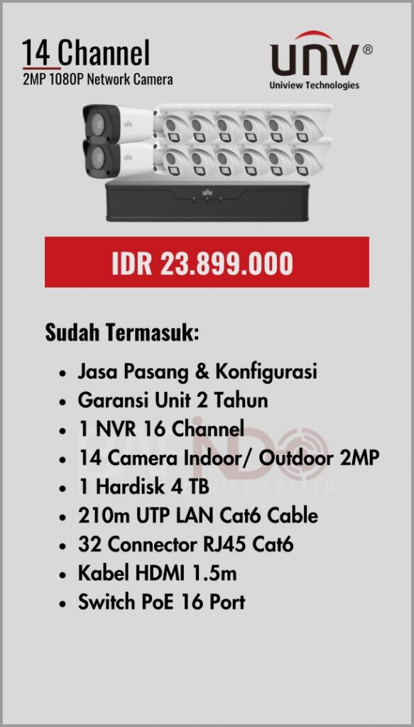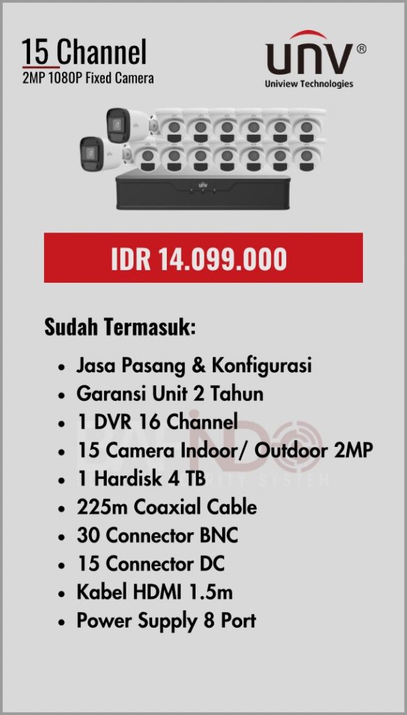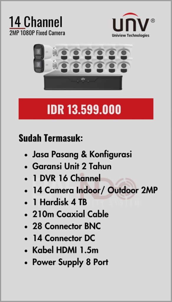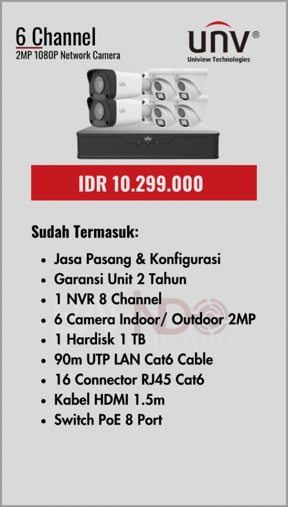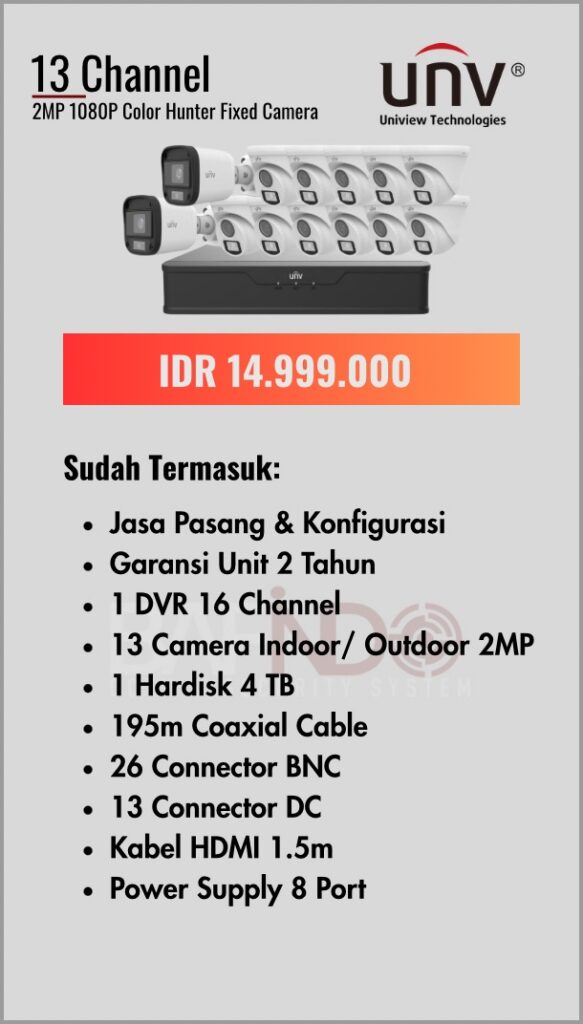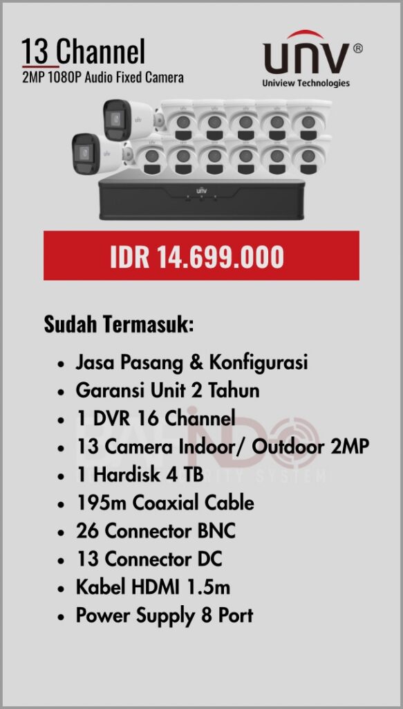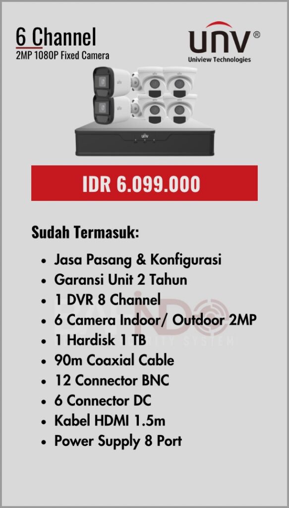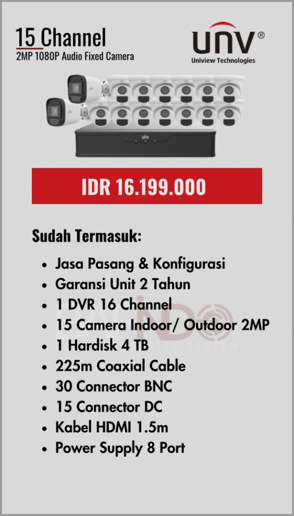 BAFINDO CCTV menyediakan berbagai pilihan paket kamera CCTV UNV — kamera analog, kamera dengan audio, full color kamera, dan IP Cam sesuai kebutuhan anda.